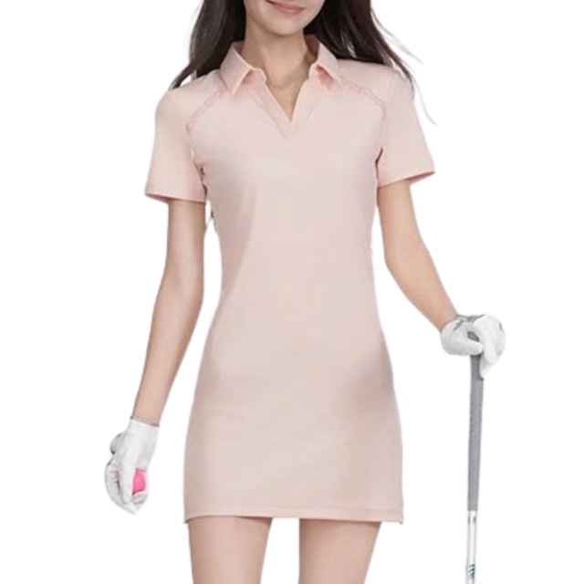 Polo collar slim-fit breathable pleated dress 10584
