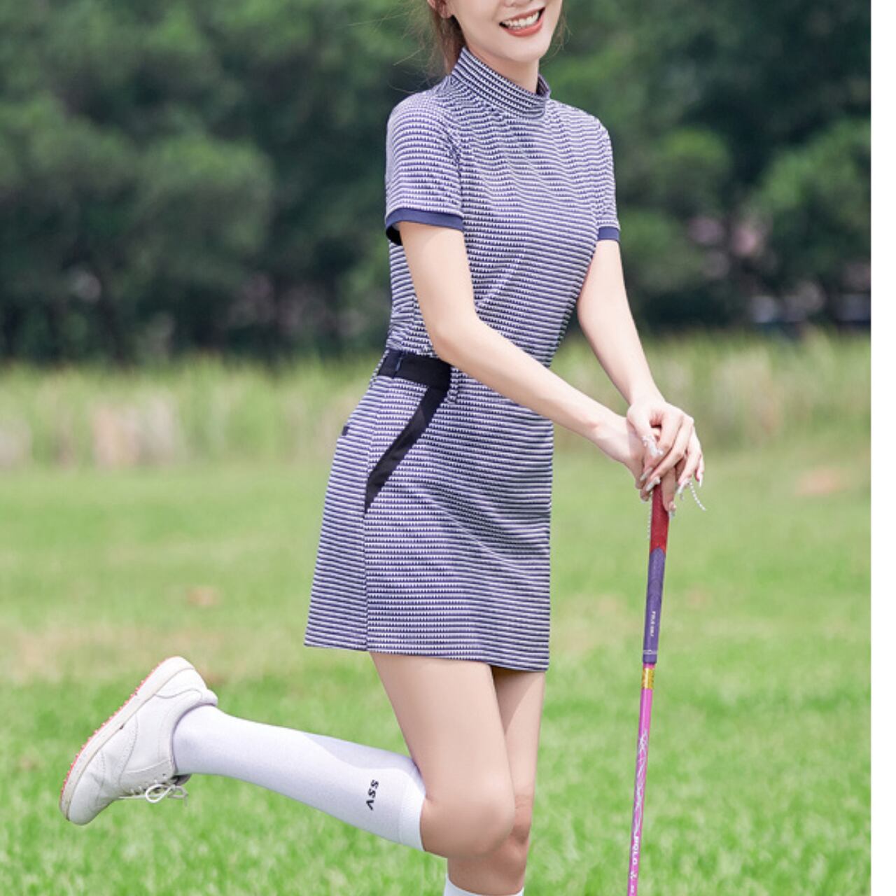 ゴルフを楽しむ女性のためにデザインされたセットアップです。このセットアップは、コースでのプレーはもちろん、ゴルフ場での公式なイベントにも最適です。エレガントなデザインと美しいフィット感は、あなたのスタイルを引き立てること間違いなしです。動きやすさを考慮したカッティングが施されているため、プレー中もストレスなく楽しめます。自信を持って着用できる一着として、ゴルフシーンに華を添えます。