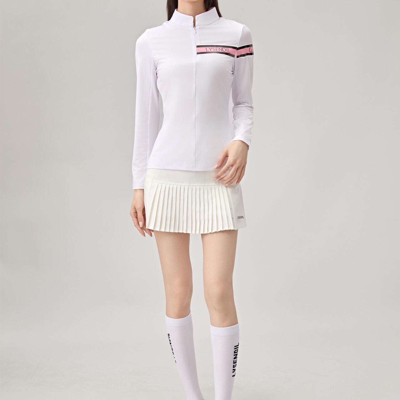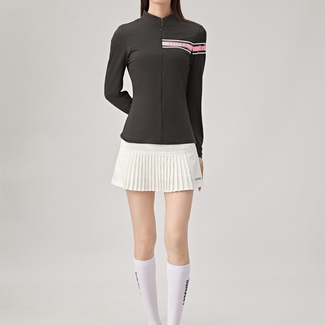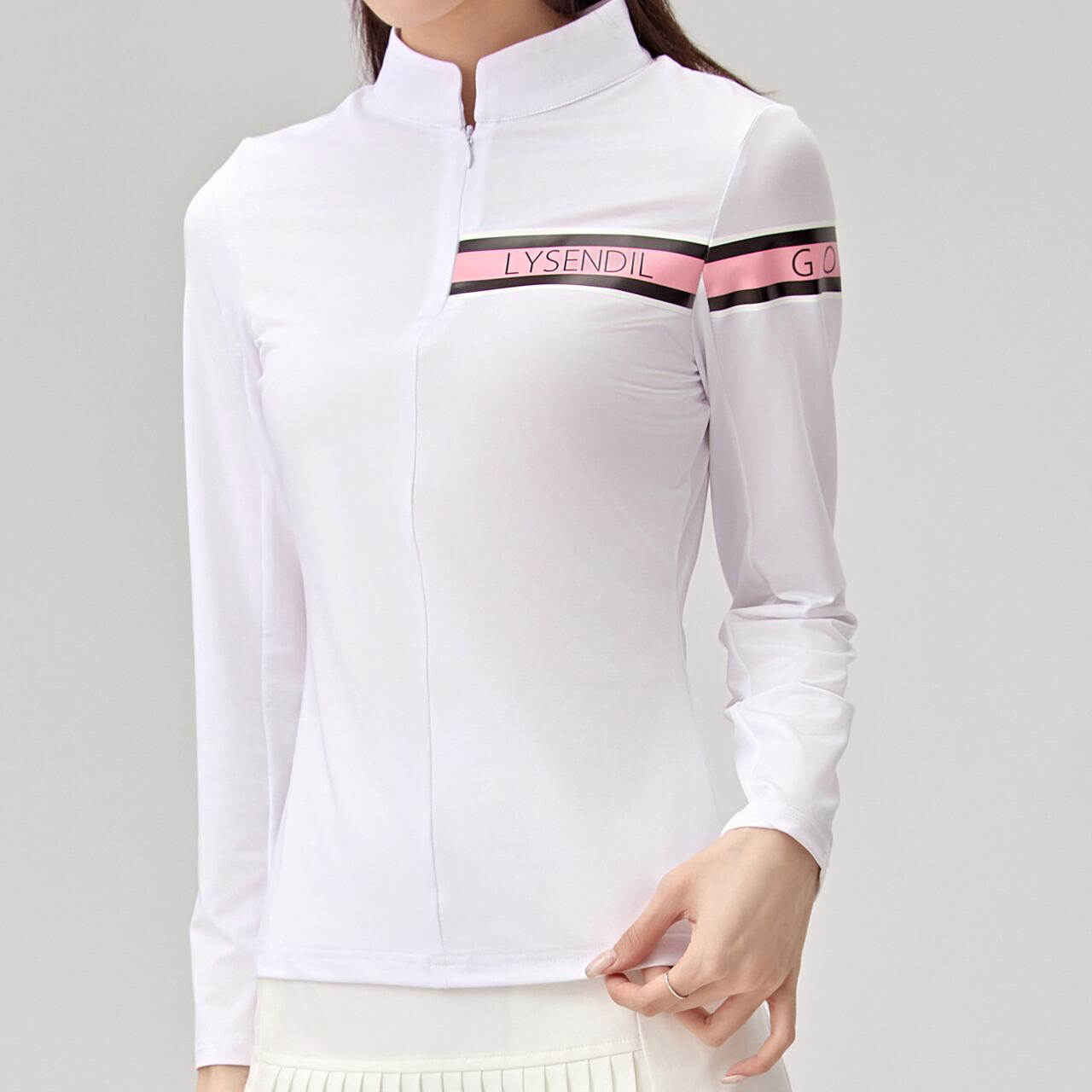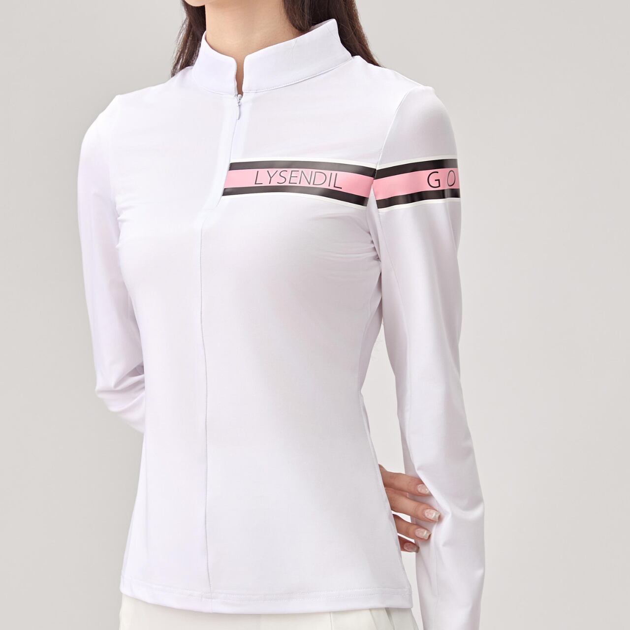 ゴルフを楽しむ女性のために特別にデザインされたトップです。スタイリッシュなスタンドアップカラーが特徴で、着るだけで上品な印象を与えます。ゴルフコースでのプレーはもちろん、カジュアルな日常使いにも最適です。この長袖Tシャツを身に着けて、素敵なゴルフファッションを楽しんでください。