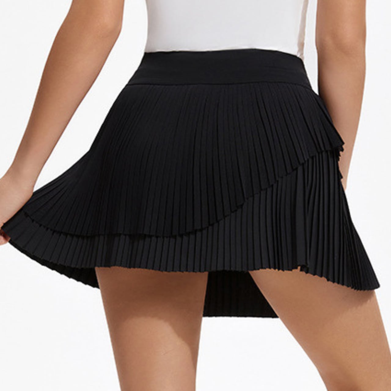 ゴルフを楽しむ女性のために特別にデザインされたスカートです。このショートスカートは、可愛らしいプリーツデザインが特徴で、動きやすさとおしゃれさを両立させています。スイング時もストレスフリーで、プレイに集中することが可能です。また、ゴルフ場はもちろん、日常のカジュアルシーンにもぴったりなスタイルです。このスカートを身にまとい、スタイリッシュで快適なゴルフライフをお楽しみください。