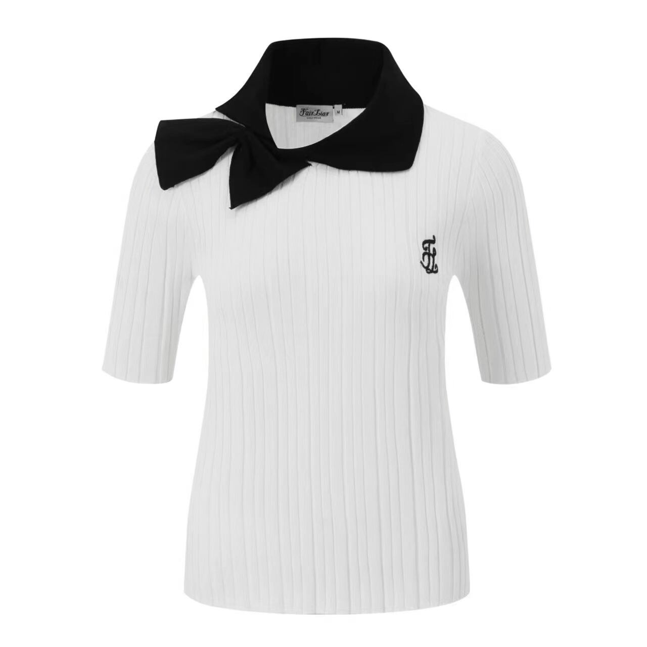 Short-sleeved ribbon T-shirt 10179