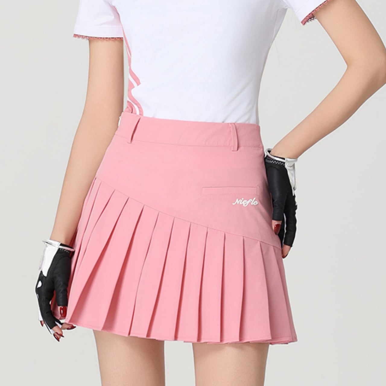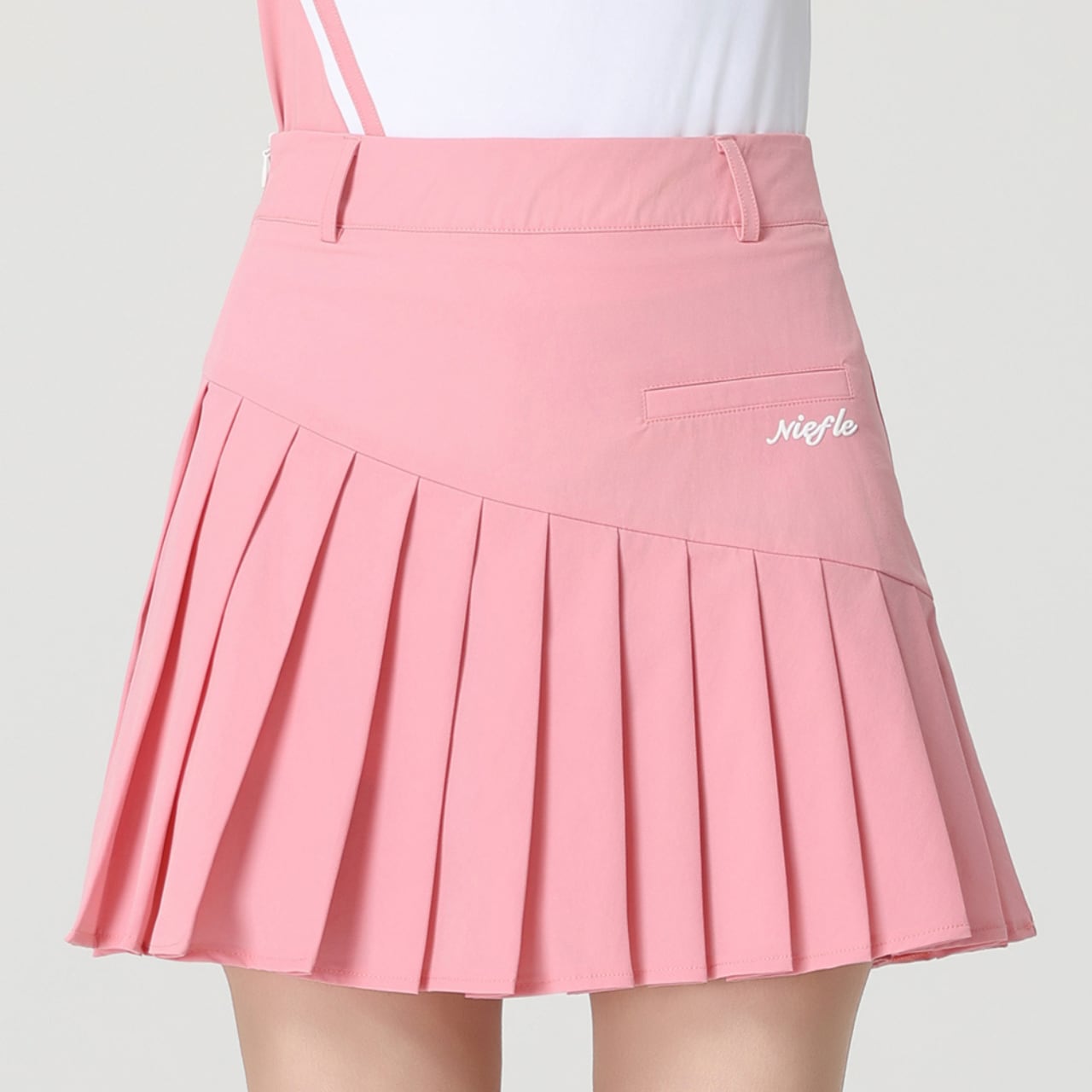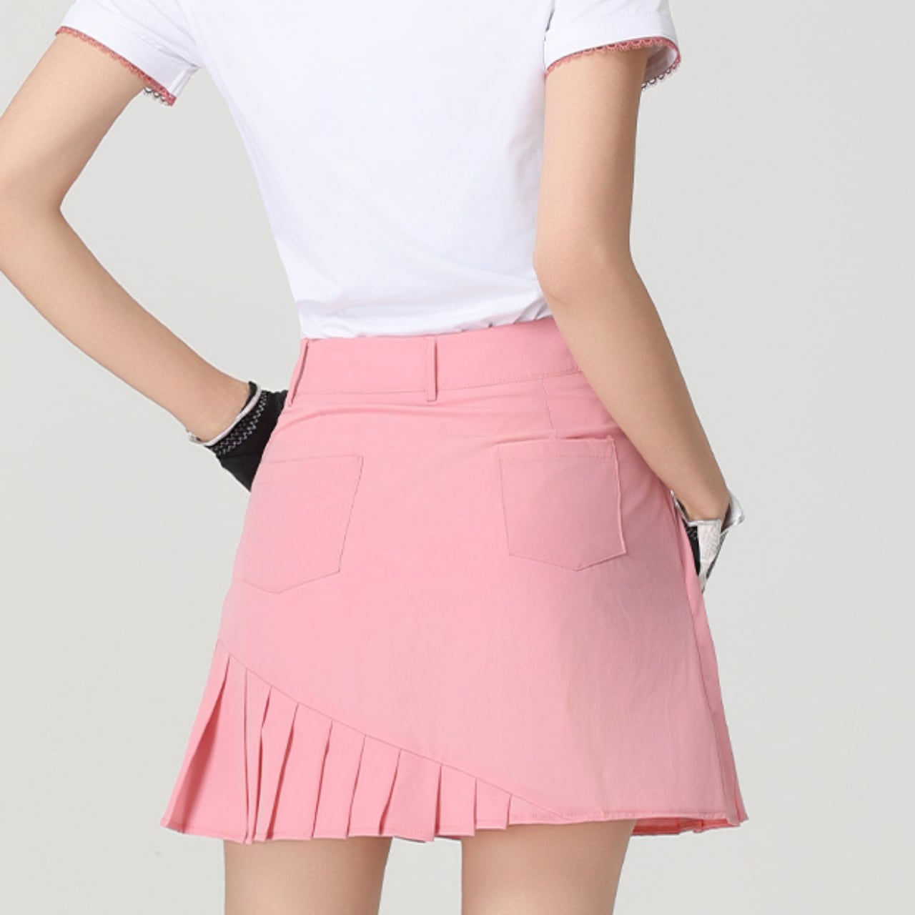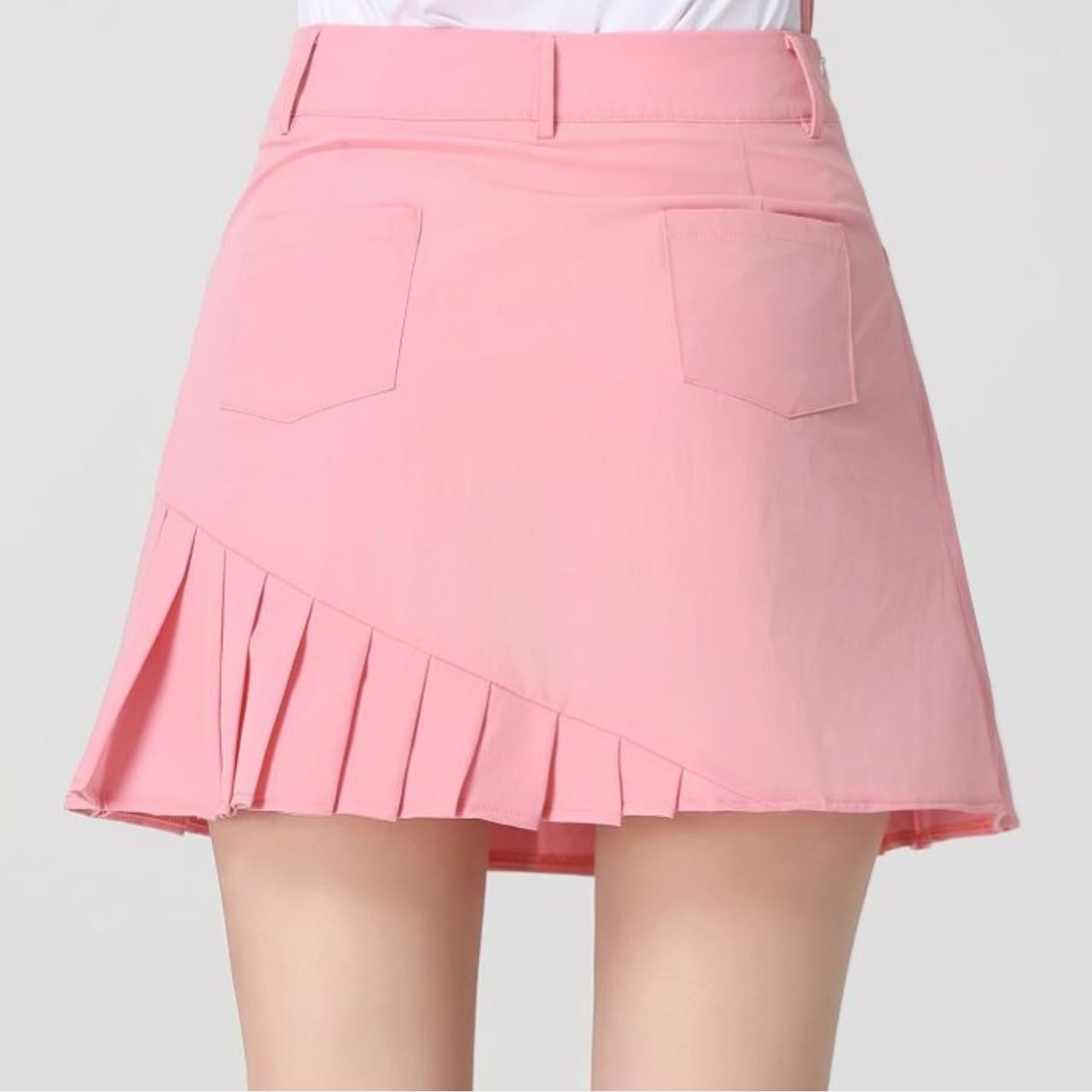 ゴルフにぴったりな斜めプリーツデザインのスカートです。ウエスト位置には心地よいフィット感を与え、動きやすさを重視したスタイルです。さらに、シンプルながら洗練されたデザインがカジュアルなシーンにもマッチしますので、ゴルフだけでなく日常使いにもおすすめです。シーズンを通して活躍するアイテムですので、ぜひお楽しみください。