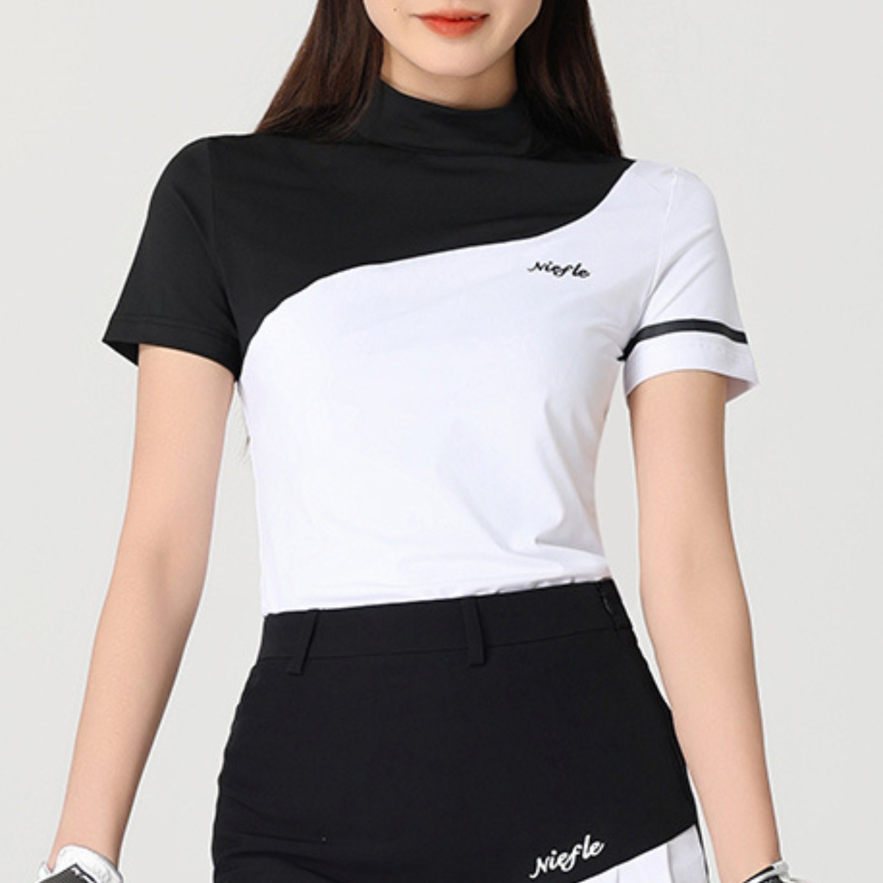 Black/White short sleeved slim shirt 10295