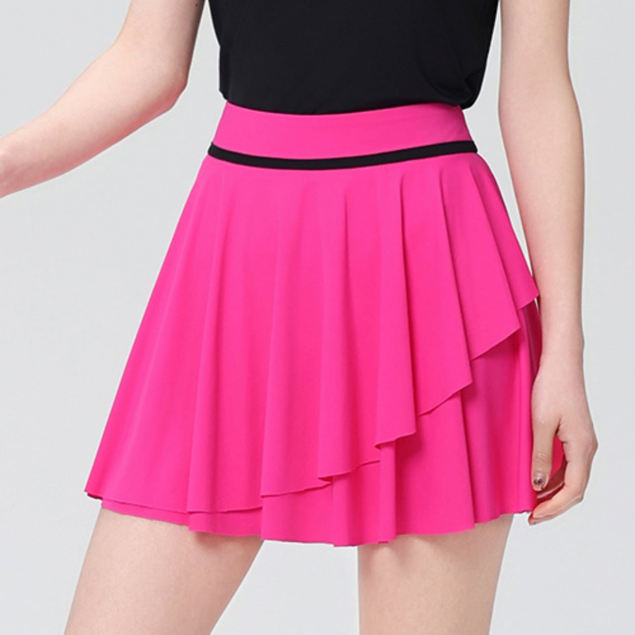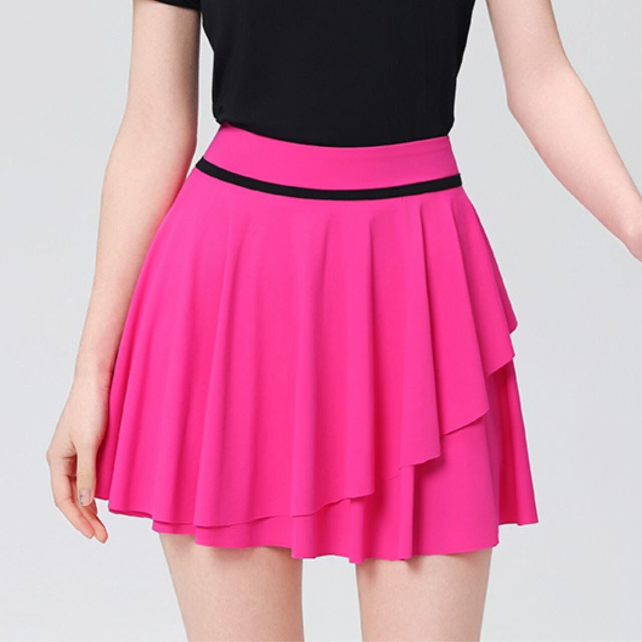 こちらのスカートは、ゴルフを愛する方々のために特別にデザインされた通気性抜群のスカートです。軽量な素材を使用し、汗をかいても快適性を保つ吸汗速乾性が魅力です。スイング時の動きをしっかりサポートするリラックスしたフィット感により、思い切りプレーを楽しむことができます。洗練されたコントラストカラーのデザインは、ゴルフ場でのプレーはもちろん、カジュアルなシーンでもおしゃれに着こなせるアイテムです。
