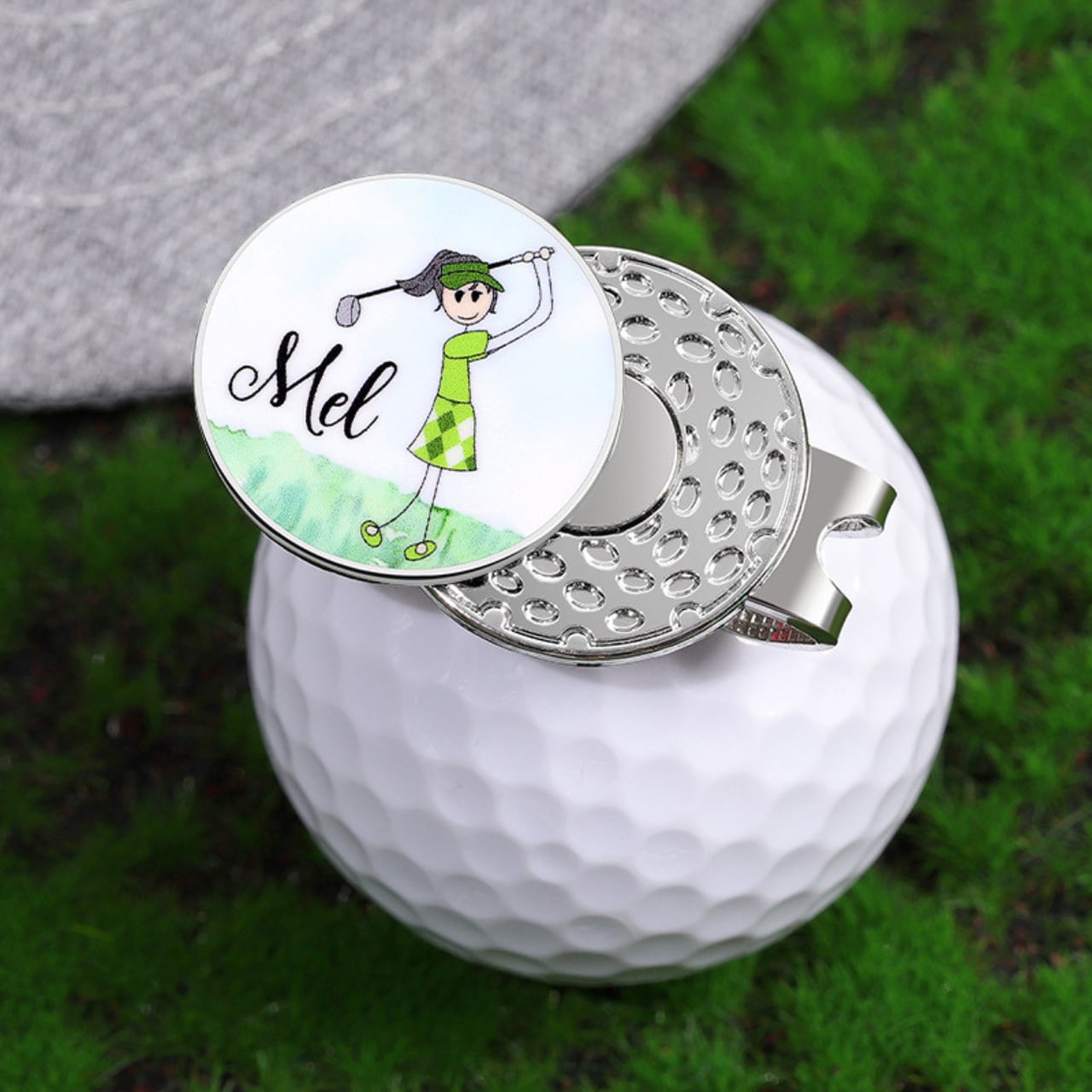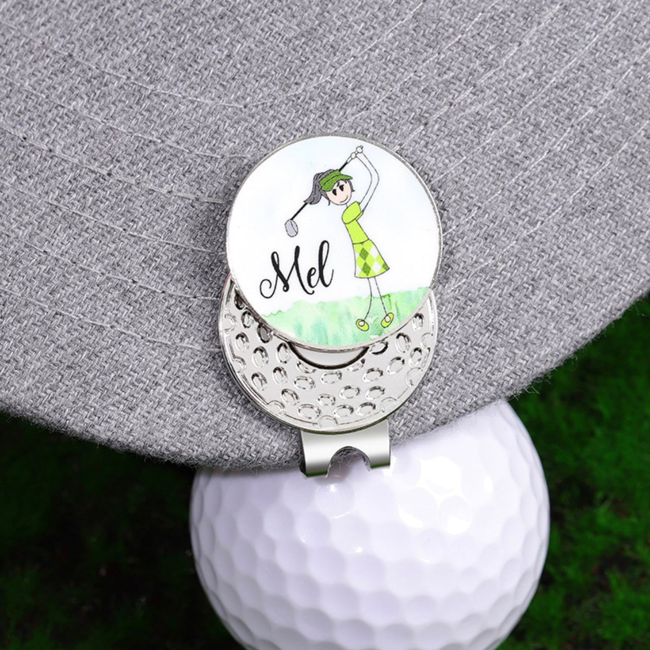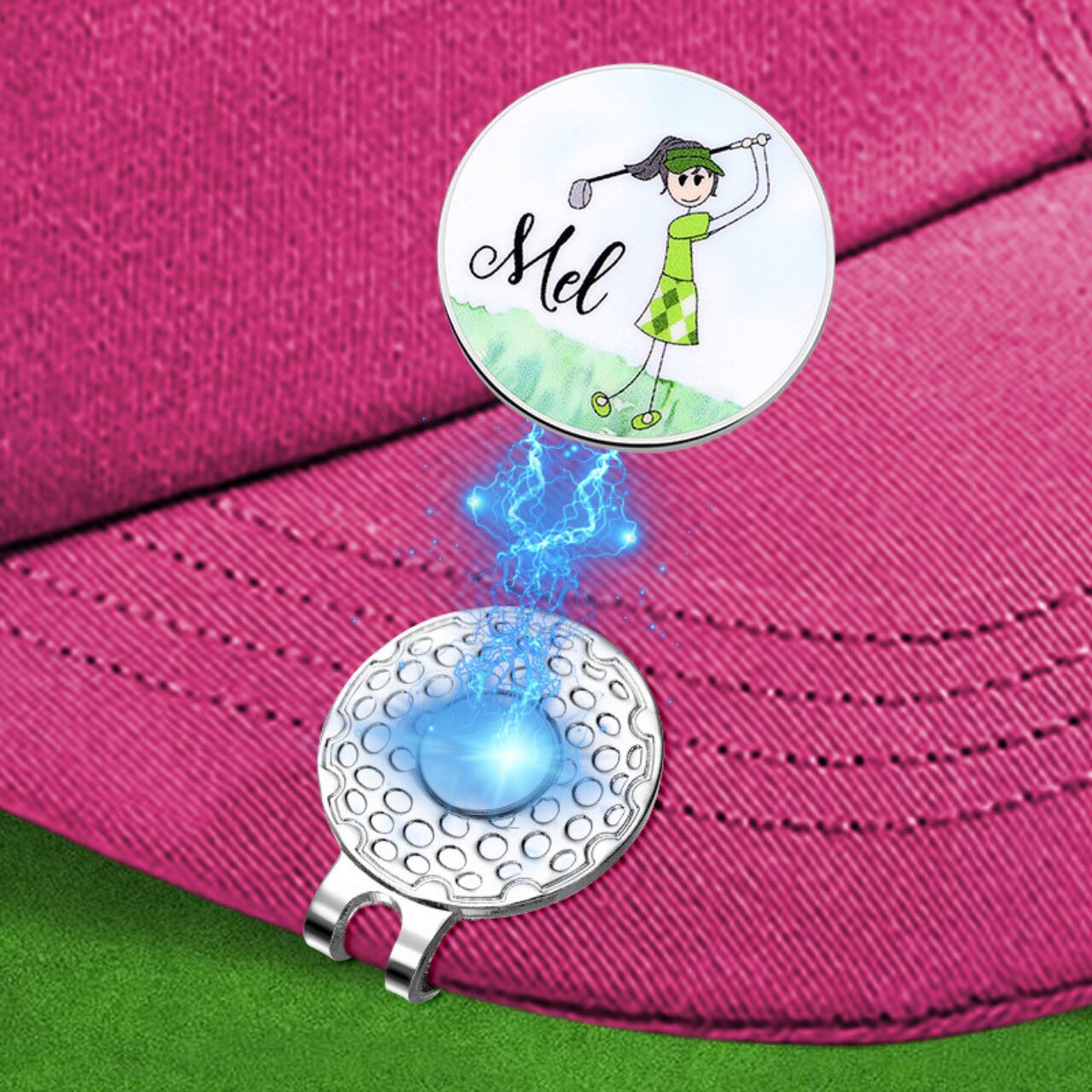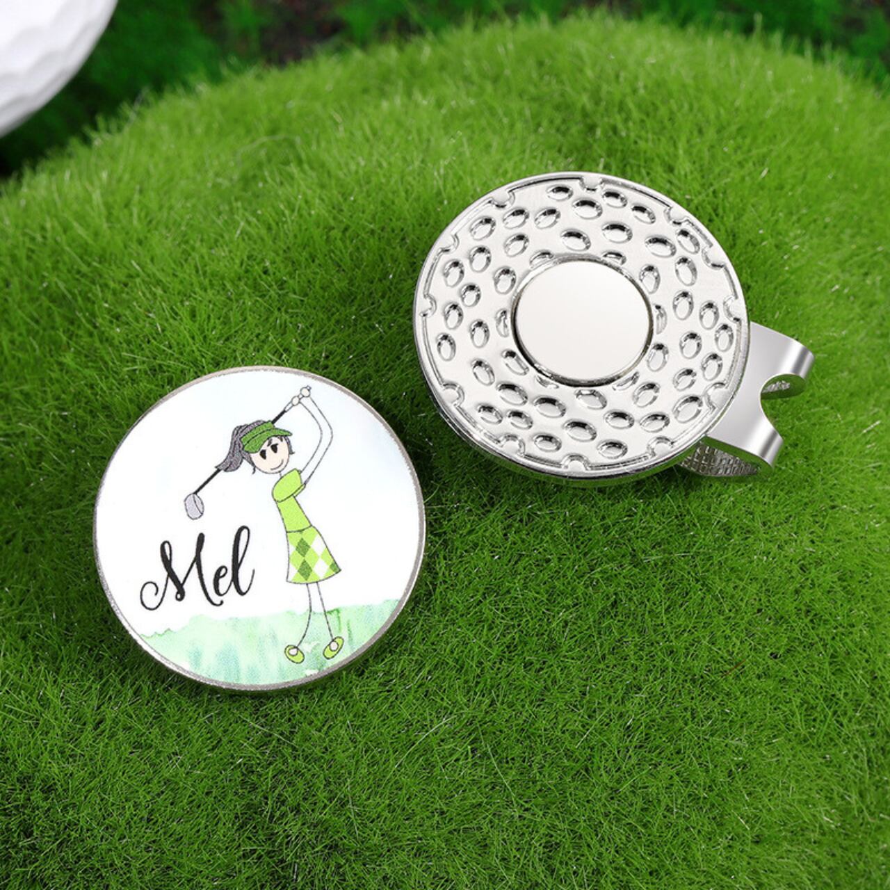 こちらのマークは、ゴルフを愛する方のために設計されたマグネット式キャップホルダーです。強力なマグネットが搭載されており、キャップをしっかりと固定することができますので、プレー中も紛失の心配がありません。軽量でコンパクトなデザインながら、使い勝手は抜群。キャップを手軽に取り外しできるので、素早くプレーに集中できます。さらに、洗練されたシルバーカラーはゴルフのエチケットにも合い、スタイリッシュな印象を与えます。ゴルフ場だけでなく、普段使いのアクセサリーとしても重宝します。