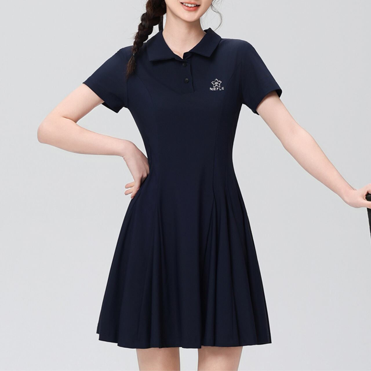 こちらのワンピースは、ゴルフエレガンスワンピースとして特におすすめの一着です。シンプルなデザインでありながら、優雅さを演出するラインが魅力で、プレイ時でも美しいシルエットを保てます。軽やかな素材感が、快適な着心地を提供し、動きやすさも兼ね備えています。このドレスで、あなたのゴルフスタイルを一層引き立てて、新しいスタートを切ってみませんか。