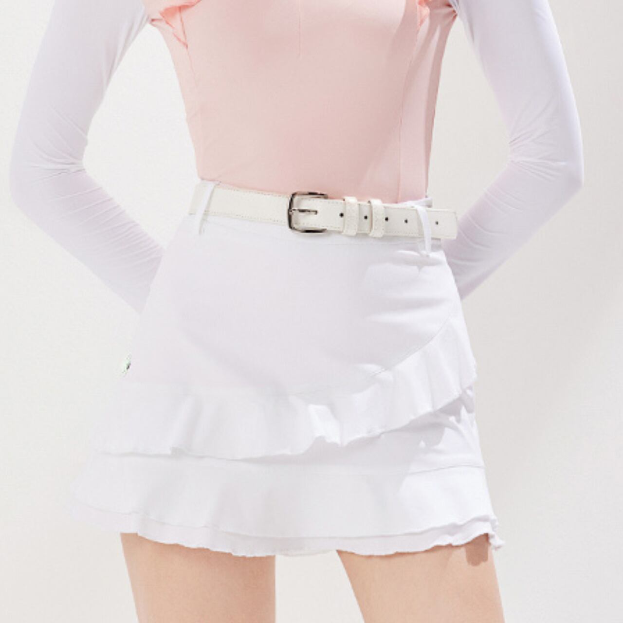 こちらのトップスは、ゴルフ愛好者のために開発された快適なスカートです。軽量で通気性に優れた素材を使用しており、動きやすさを追求した設計がされています。シンプルなデザインながら、韓国風のスタイルが魅力的で、ゴルフ場だけでなく、日常のカジュアルコーデにも組み込みやすいアイテムです。このスカートで、プレイ中もスタイリッシュさを保ち、快適な時間を過ごしてみてはいかがでしょうか。