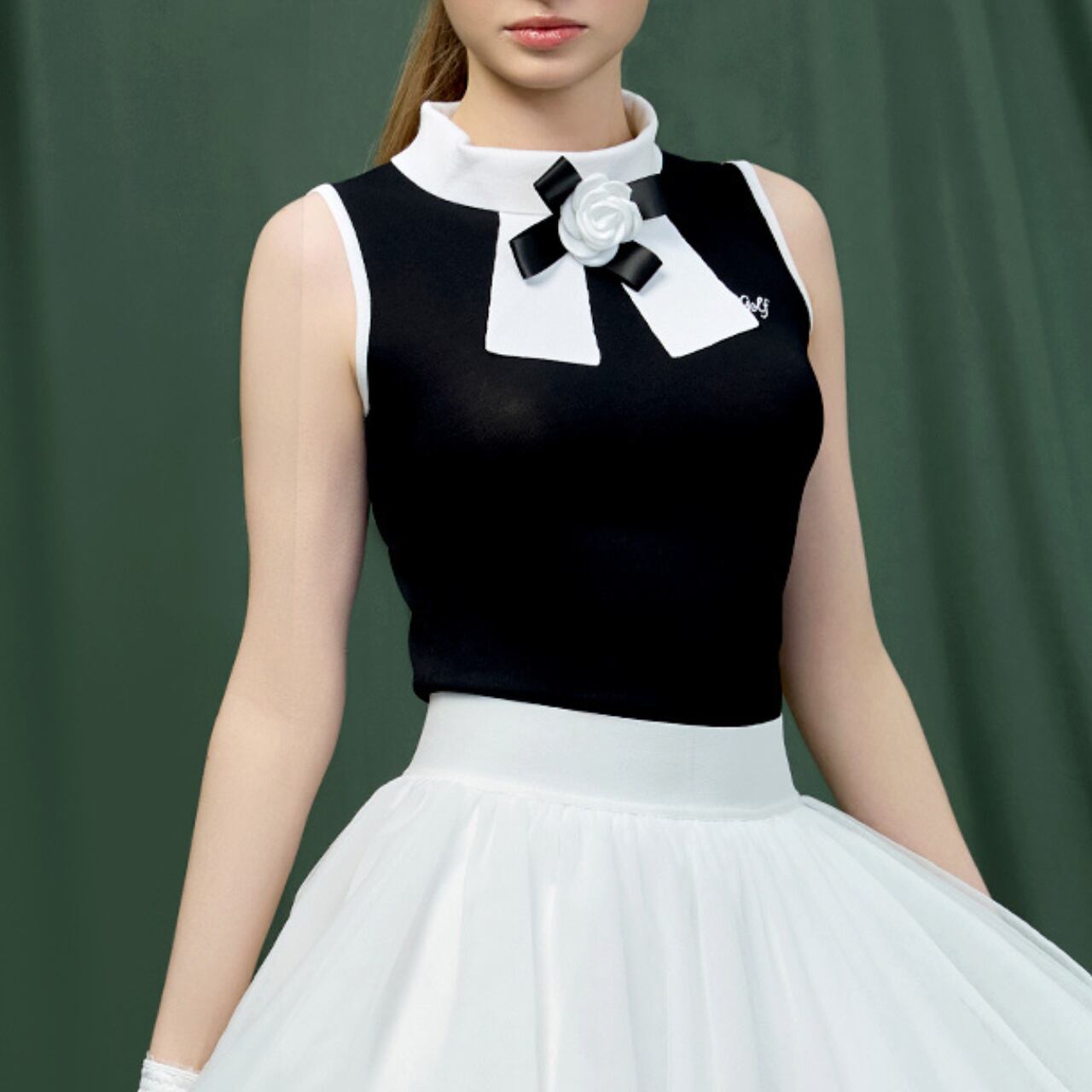 こちらのスリムトップは、エレガントなデザインで美しい花が特徴的です。ゴルフを楽しむ際にはもちろん、さまざまなシーンで活躍すること間違いなしです。ノースリーブスタイルにより、動きやすさを追求し、スイング時のストレスを軽減します。軽やかな素材感と美しいデザインは、日常使いにもぴったりです。これを着て華やかな気分でプレーを楽しんでください。