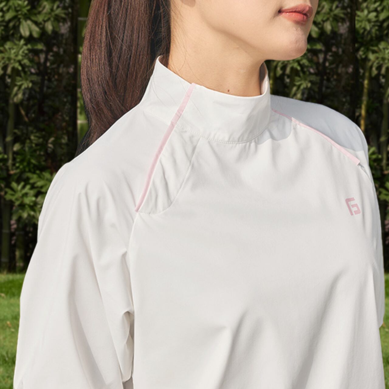 こちらは、ゴルフを楽しむ方に最適なハイネックスポーツトップです。ハイネックデザインがおしゃれで、プレー中に安心感を与えてくれます。また、スタイリッシュなシルエットは、ゴルフ場はもちろん、日常のカジュアルスタイルにも重宝します。このトップを着用して、快適なゴルフライフをお楽しみください。