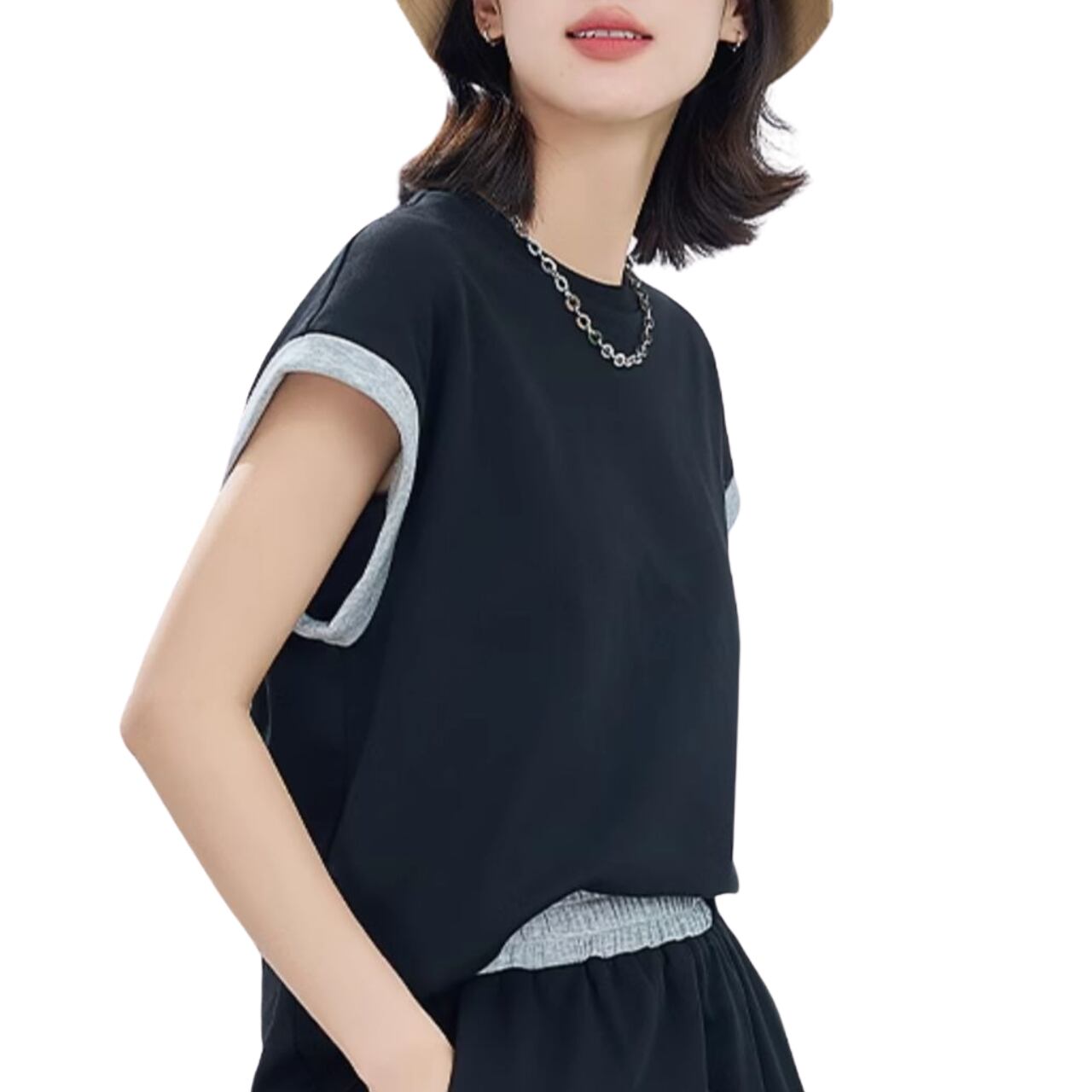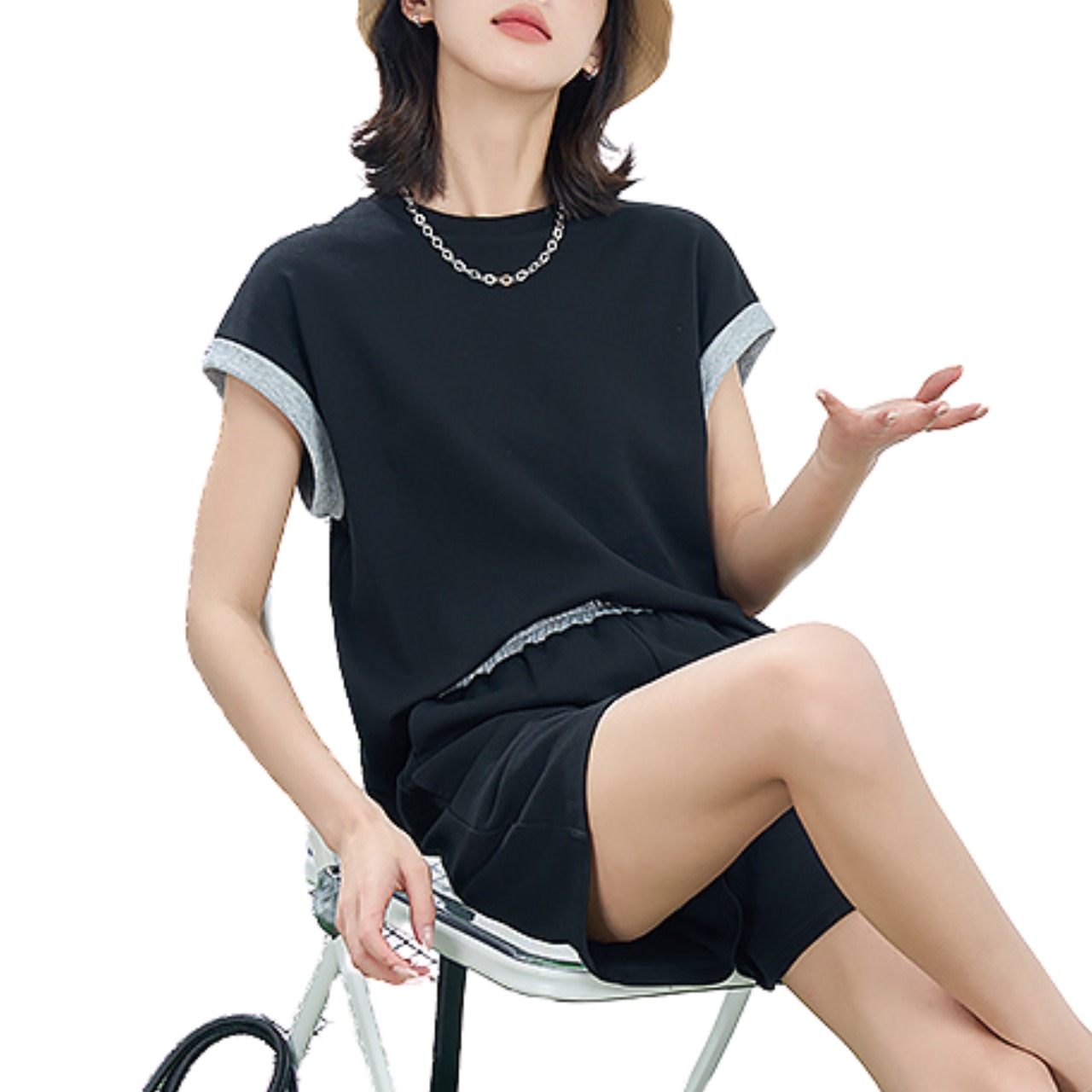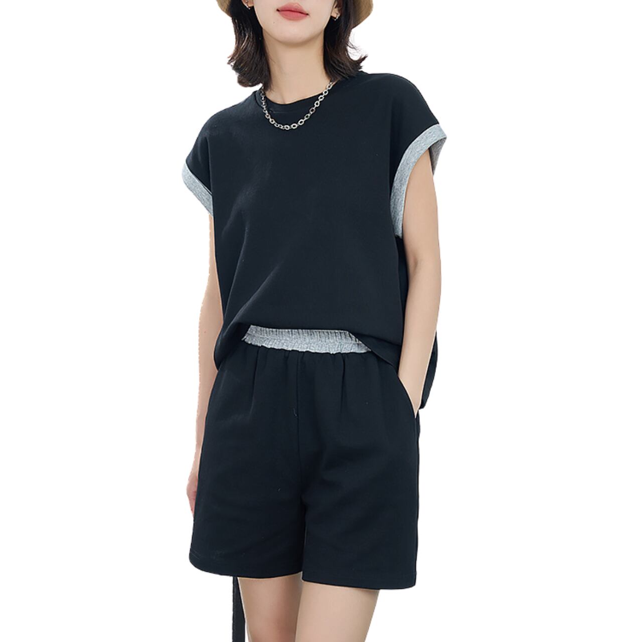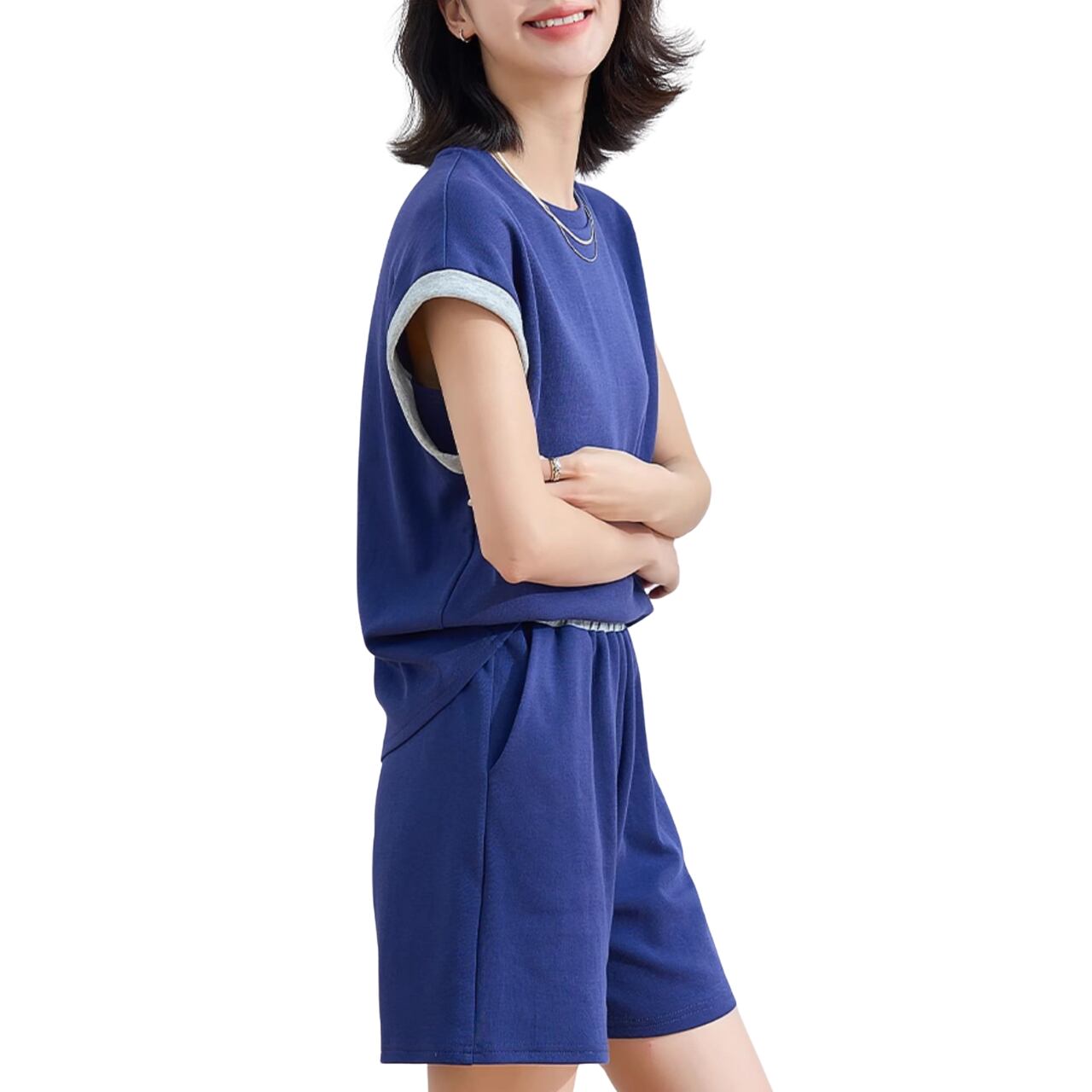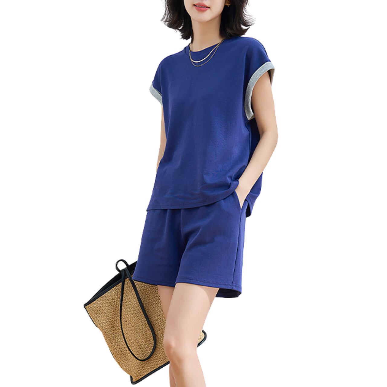 XL: 胸囲: 113cm、袖丈: 22cm、袖口: 47cm、トップスの長さ: 62cm、ウエスト: 74cm、ヒップ: 114cm、パンツの長さ: 45cm