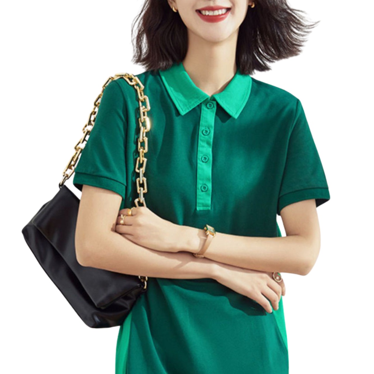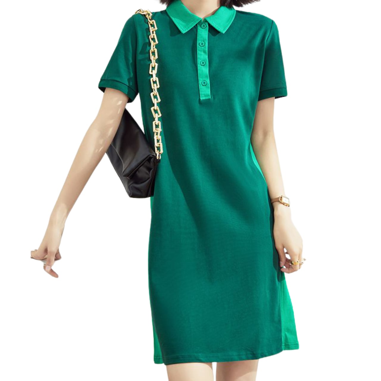 こちらは、ゴルフ愛好者にぴったりなポロカラーのドレスです。特に通気性に優れた素材を使用しているため、熱い日でも快適にプレーが可能です。洗練されたデザインとエレガントなラインは、ゴルフだけでなく普段使いにも適応し、自信を持って着こなせます。プレー中の動きやすさを考慮したカッティングで、心地よいゴルフ体験をお楽しみいただけます。