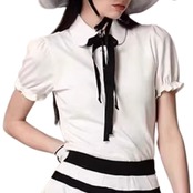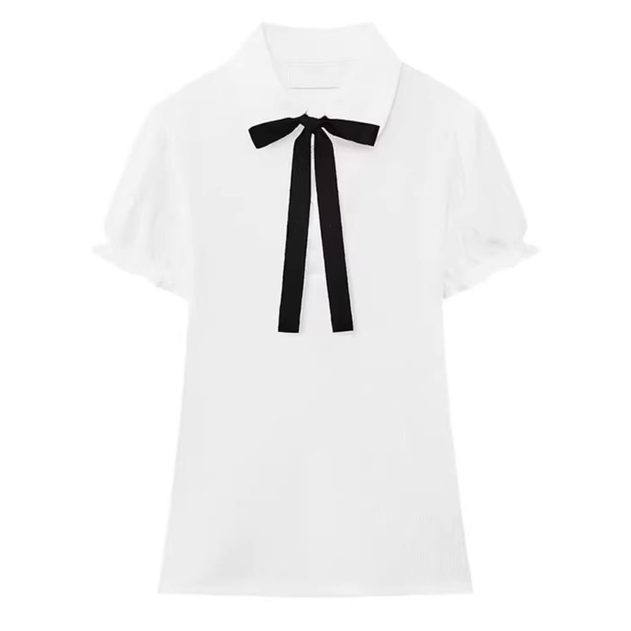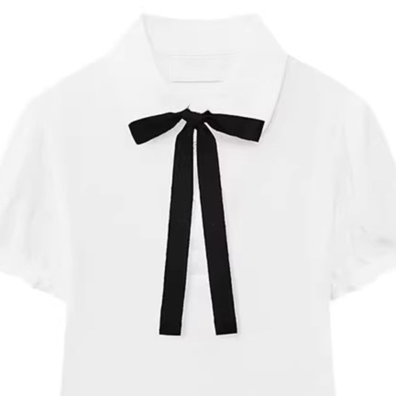 こちらのトップスは、可愛らしいリボンデザインが特徴的な一着です。カジュアルなスタイルからちょっとしたお出かけまで幅広く活躍するアイテムで、どんなボトムスとも相性抜群です。リボンを結ぶことで、さらにキュートでフェミニンな雰囲気を楽しむことができます。ぜひ、このトップスであなたのスタイルに華を添えてください。