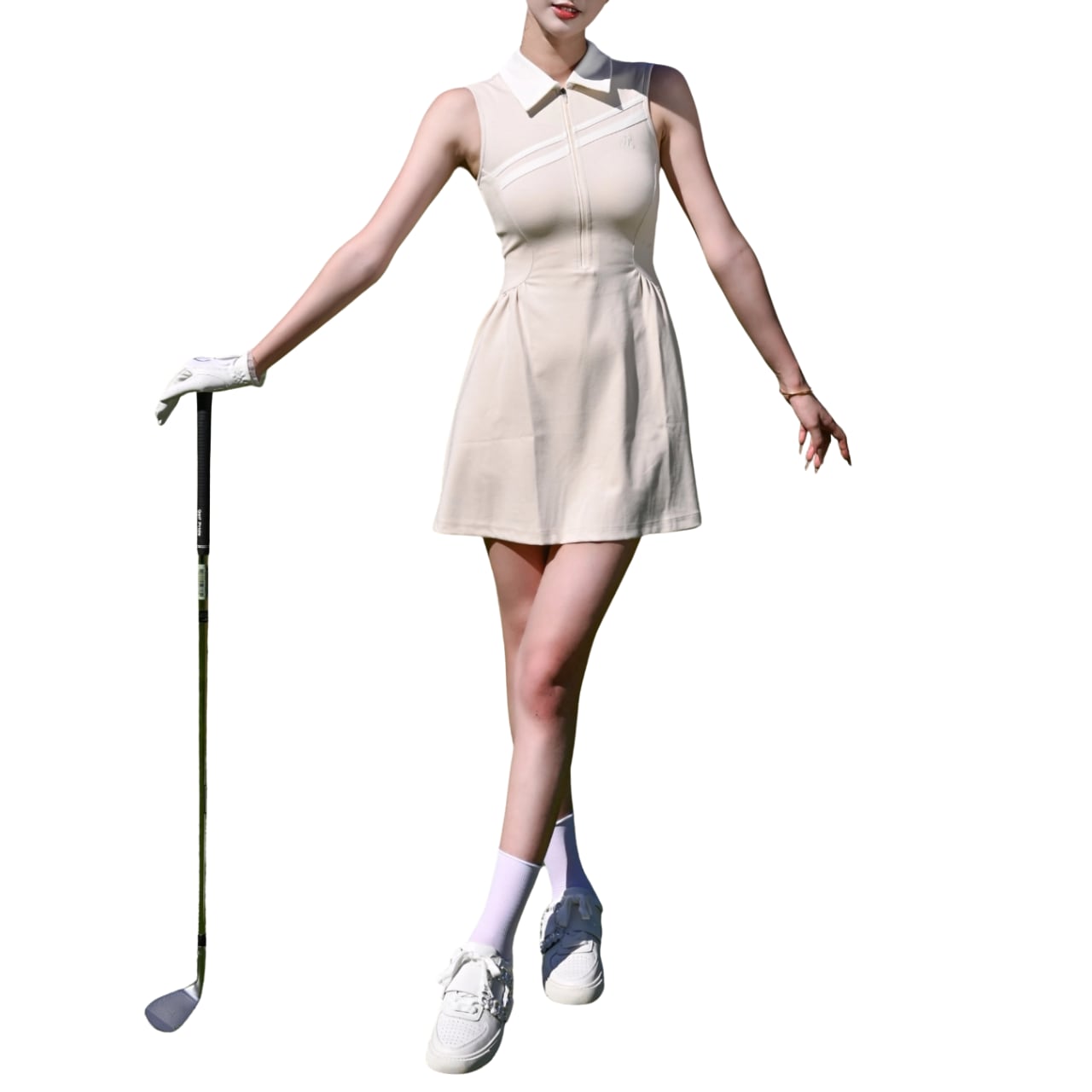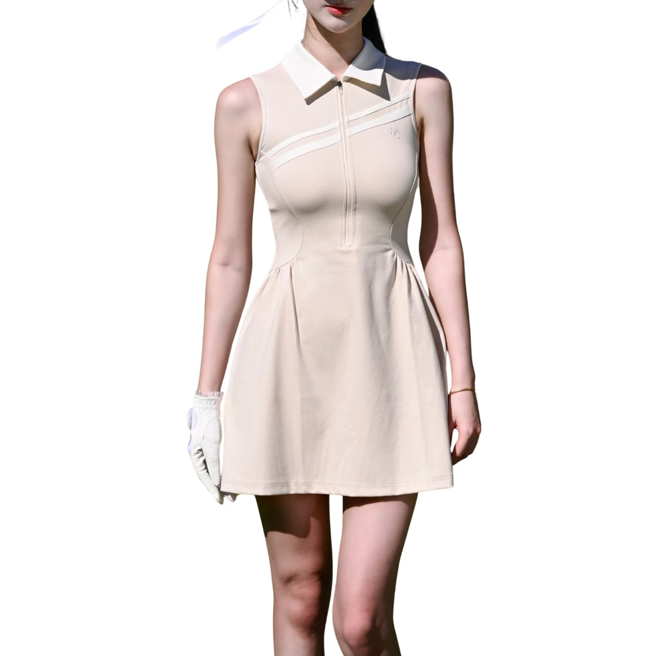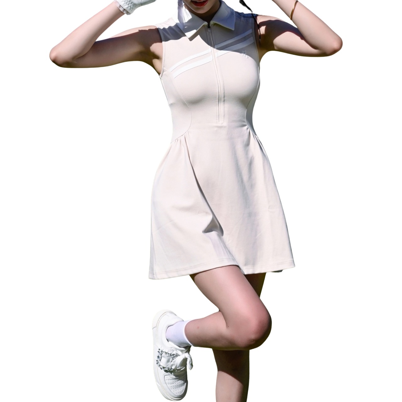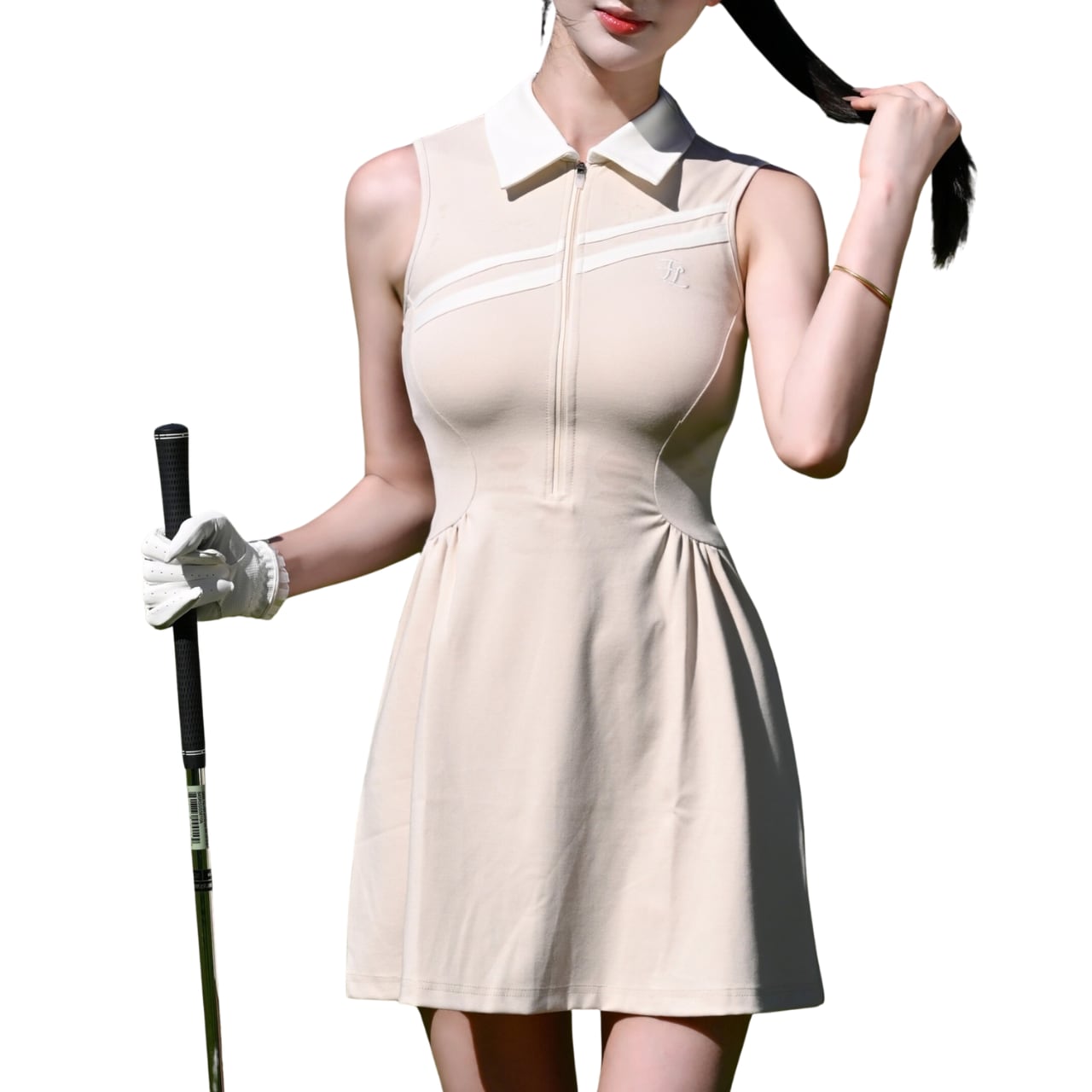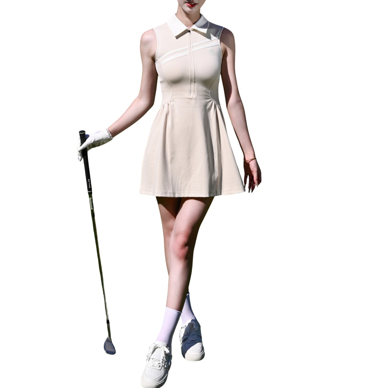 Polo collar slim-fit breathable pleated dress 10584